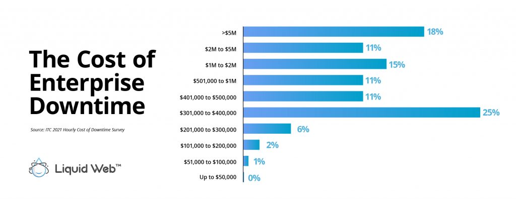 Downtime is expensive. Therefore, server reliability is highly crucial for modern companies. A 2021 survey of over 1,200 organizations by ITIC revealed the average hourly cost of downtime was upwards of $300,000, excluding legal fees, fines, and penalties.