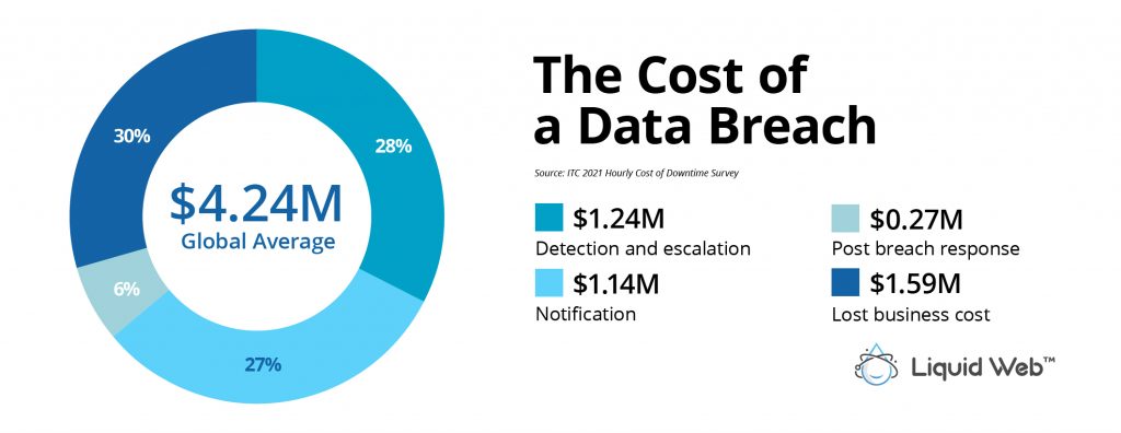 Like downtimes, data breaches can be expensive as well. A 2021 IBM report found that the average data breach costs businesses globally $4.24 million. It also found that automated security measures helped mitigate those costs by up to $3.81 million.