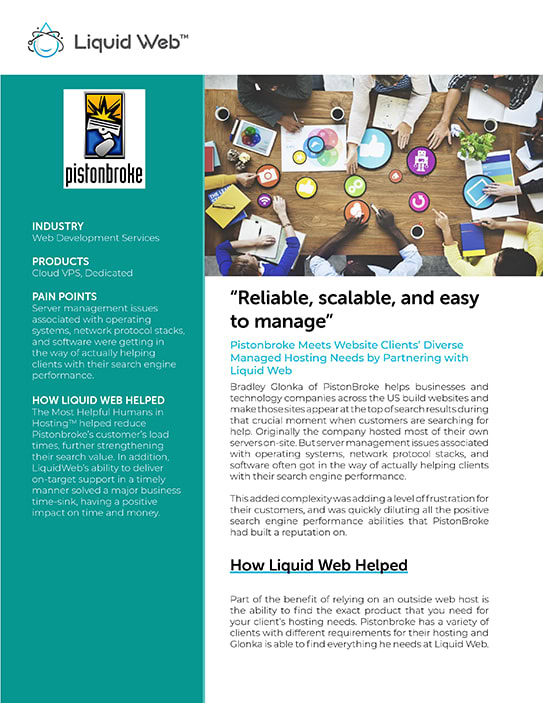 PistonBroke meets website clients’ diverse managed hosting needs by partnering with Liquid Web